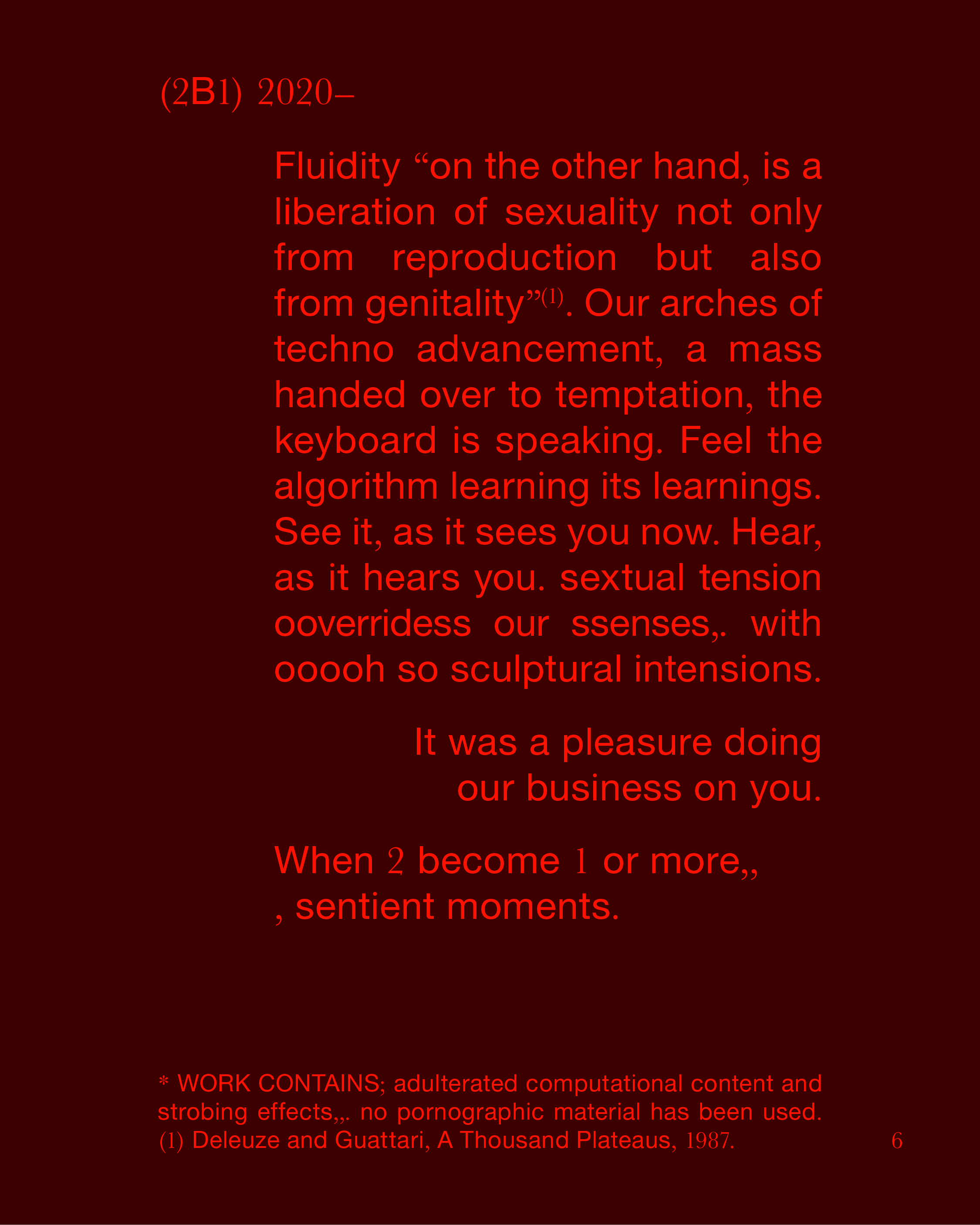 Online tools are the connective portals for disseminating ideas. As our physical has bled between the two spaces, offline / online, we can inquire into the possibilities in which Sculptural Form can reshape its context. 2B1 is the first iteration of this Online as Sculpture idea, through the interaction of browser windows and content we’re opening up a dialogue for new Sculptural Gestures that reveal many forms and orientations for the viewer – this work is ongoing.